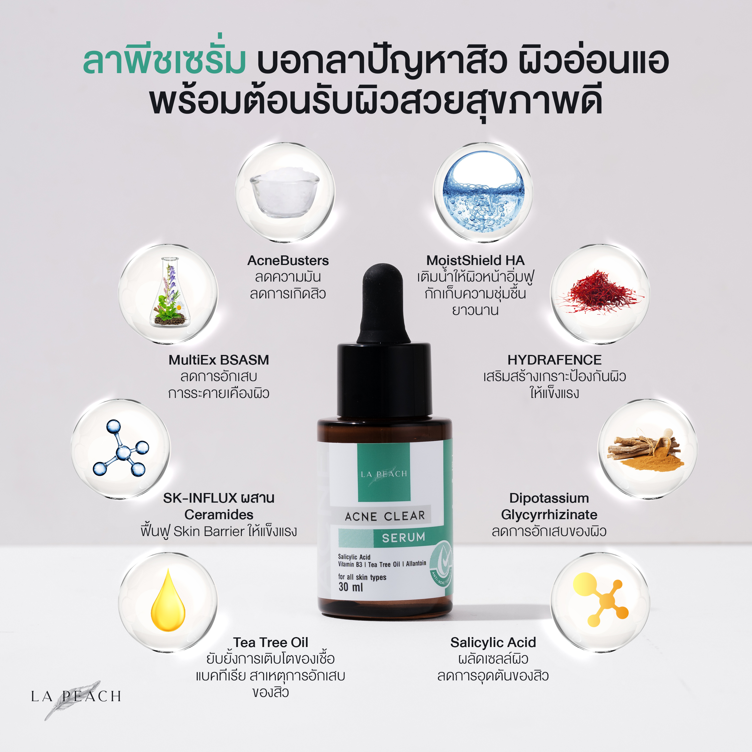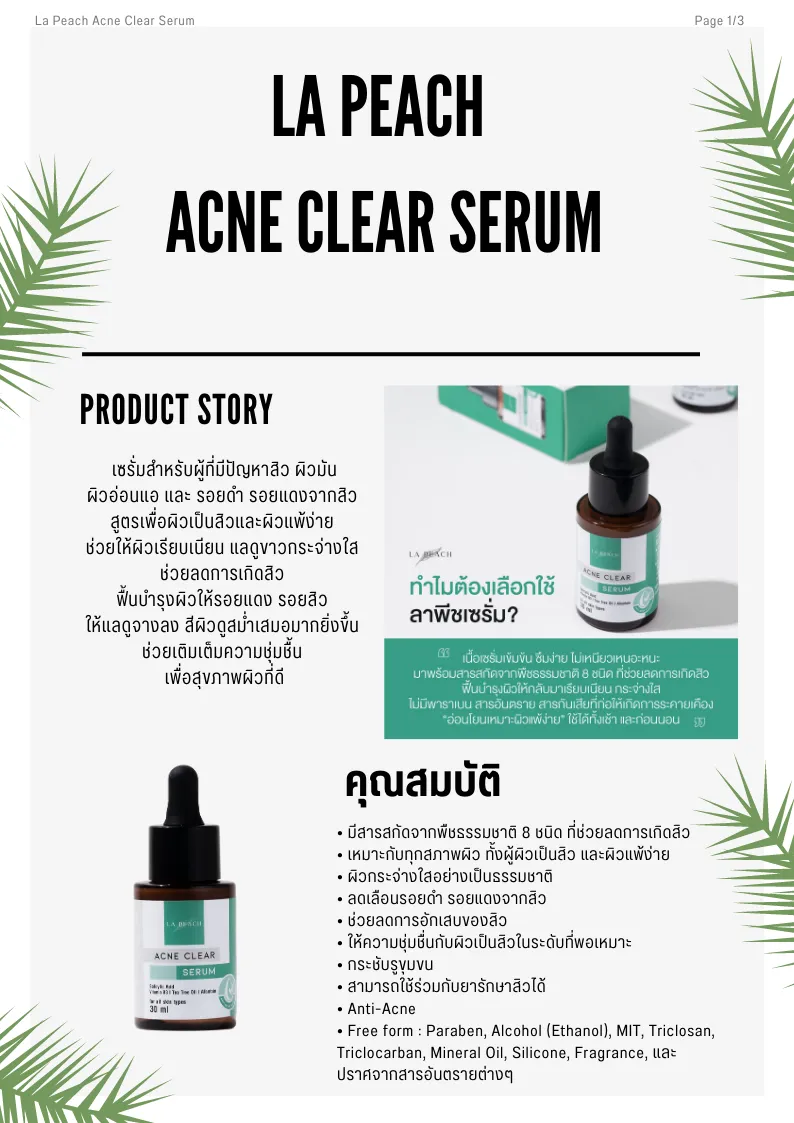ข้อมูลเฉพาะของ La Peach หน้าสวยใส เคลียสิว ผิวสว่าง ฉ่ำโกลว นุ่มเนียน